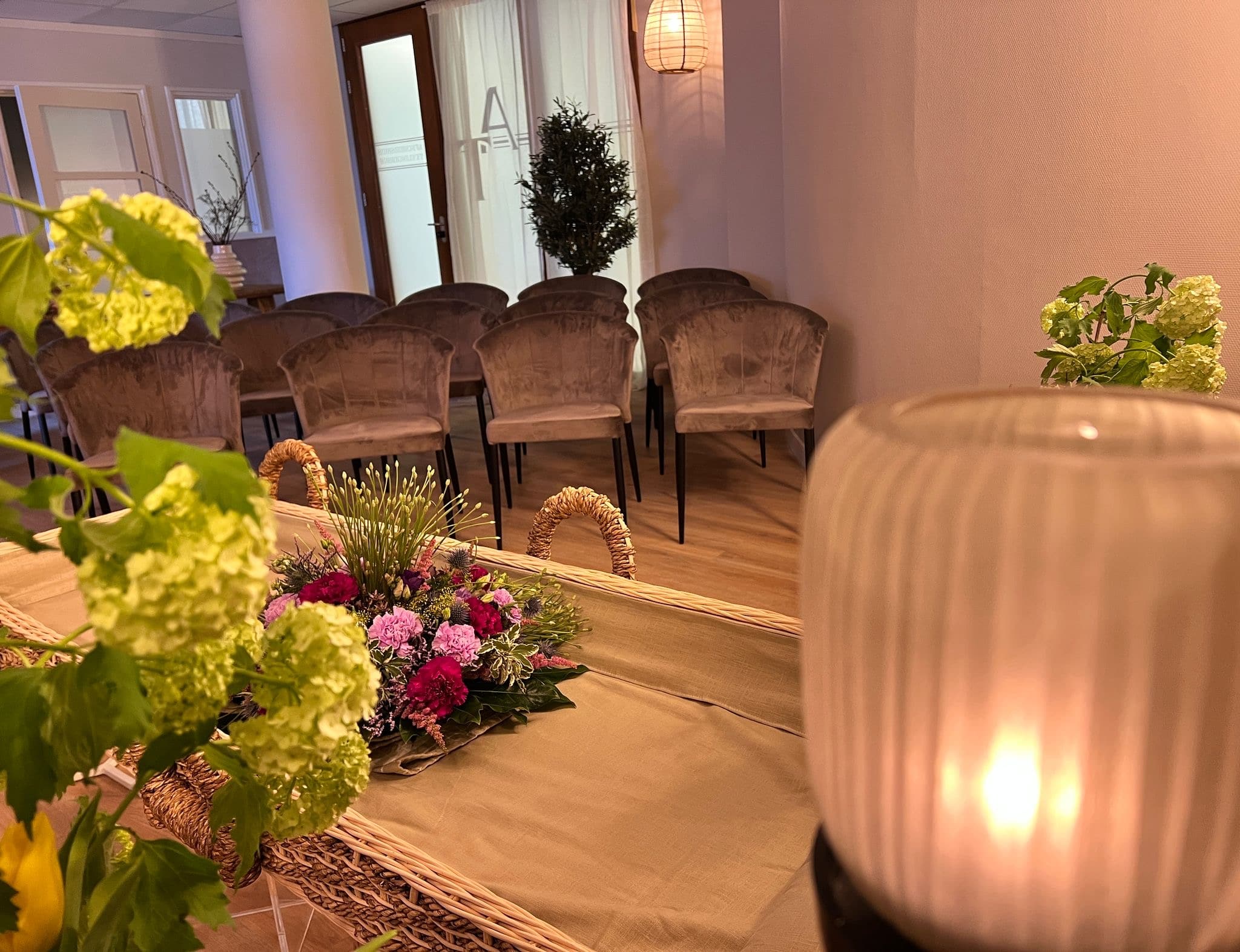 - Een ontvangruimte voor samenkomsten in familiekring en voor condoleances en afscheidsceremonies.